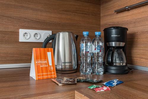 Apartments with a view of the city or the Mitinsky Landscape Park with a work and kitchen area. The kitchen area is equipped with a hob, extractor hood, refrigerator, microwave oven, kettle, washing machine, as well as utensils for cooking and eating. In the bathroom toiletries, slippers. In addition, each apartment is equipped with an iron, ironing board, clothes dryer, hairdryer, TV, safe and wi-fi router. |