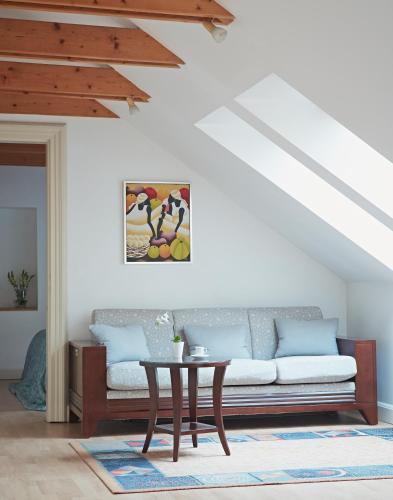 This suite features a sofa, seating area and electric kettle. |