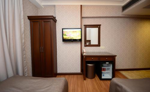 Modernly decorated, this room includes a flat-screen TV, air conditioning, minibar and a private bathroom. |