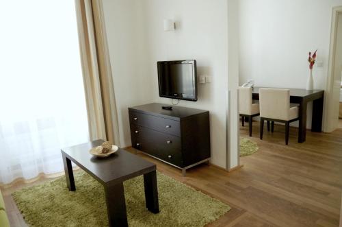 This suite has a flat-screen TV, air conditioning and sofa. |