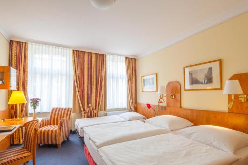 The twin room features an electric kettle, a carpeted floor, as well as a private bathroom featuring a shower and a hairdryer. The twin room provides a minibar, a wardrobe, a safe deposit box, a flat-screen TV with cable channels, as well as an inner courtyard view. The unit offers 2 beds. |
