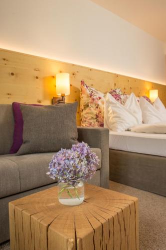 Spacious suite with a big and a small bedroom in the attic, a living room, a bathroom with a bath and a balcony. |