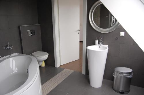 Spacious apartment on the first floor featuring parquet floors, a separate and fully equipped kitchen, a living room with a sofa, flat-screen TV and a dining table. There are 2 modern bathrooms, one with a bathtub and one with a shower, as well as a separate toilet. The apartment is accessible by lift. The apartment is between the street side and the court side. |