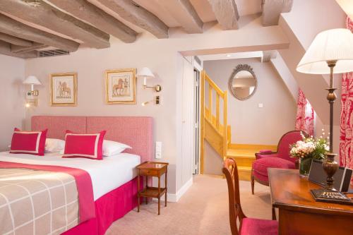 This suite with bright pink tones offers views over the Parisian rooftops. It is set on 2 floors and features a bathroom on each floor, with a shower, hairdryer and toilet. Please specify your bedding preference during booking. |