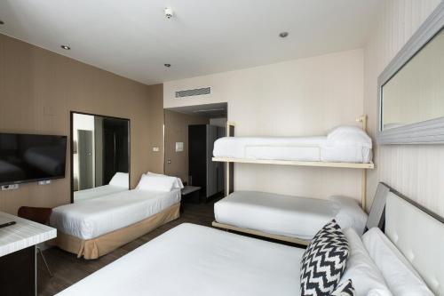 This room has flat-screen satellite TV, free Wi-Fi, hydro-massage shower, and safety box. The room has 1 set of bunk beds and either double or twin beds (on request). Baby cots, baby bathtub, and baby buggy are also available on request. A gift for the children is included. |