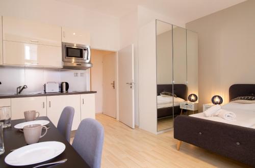 This apartment features a tumble dryer, stovetop and tea/coffee maker. |